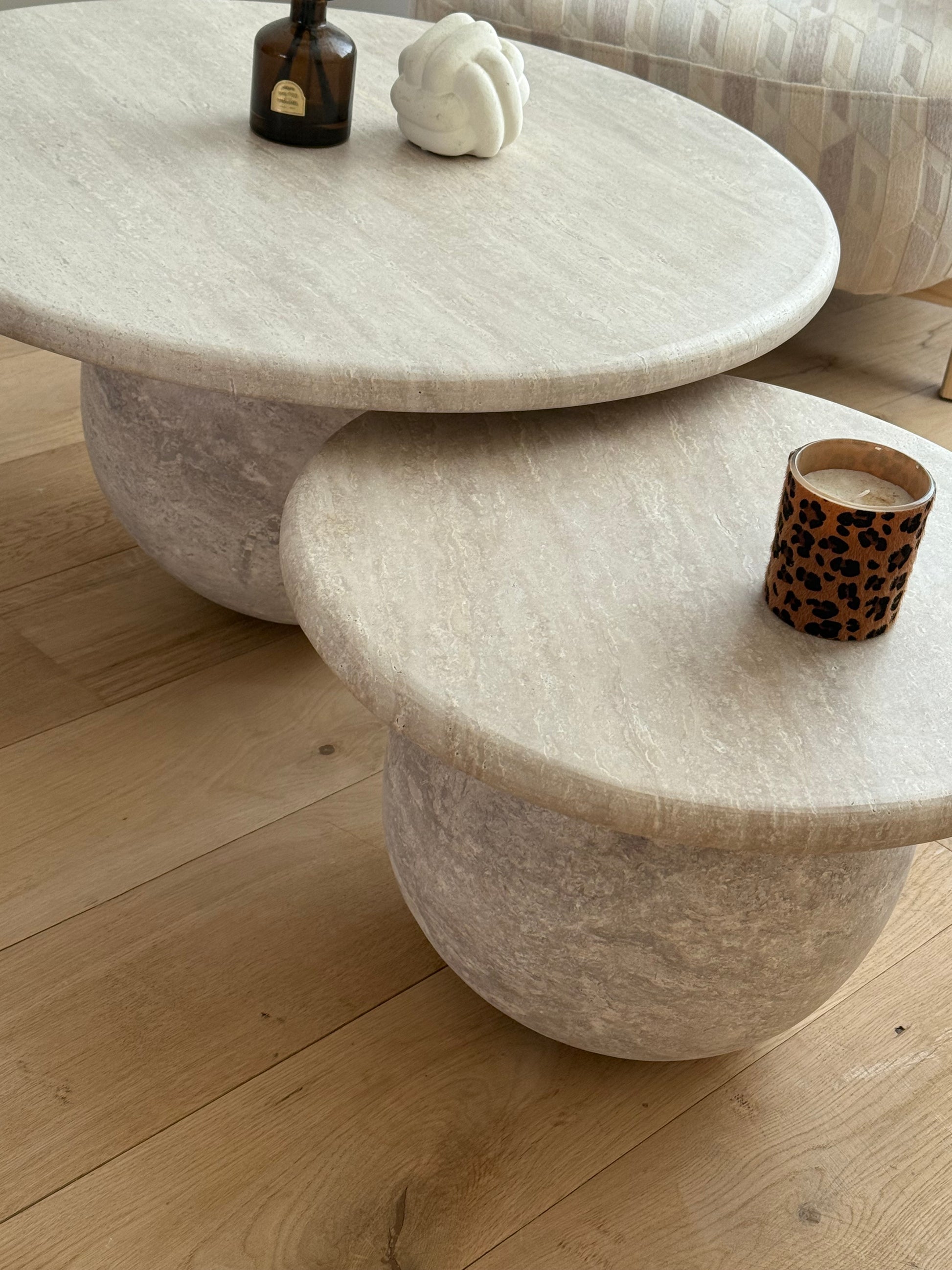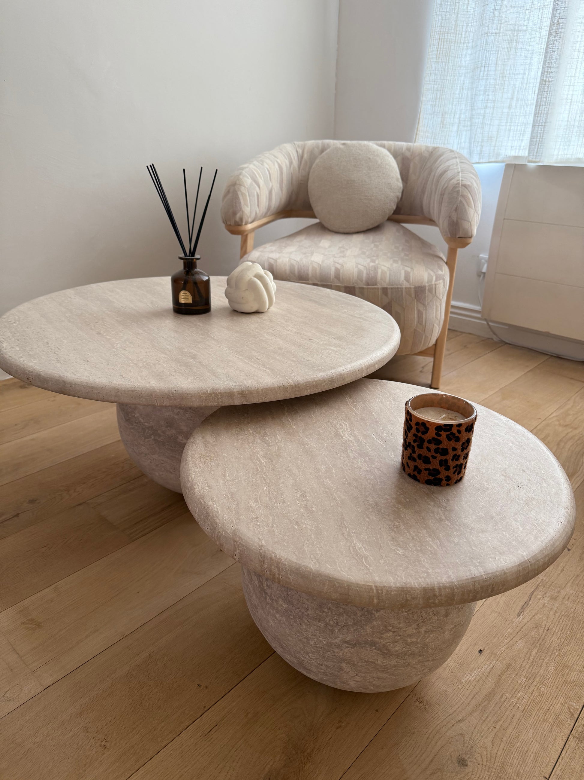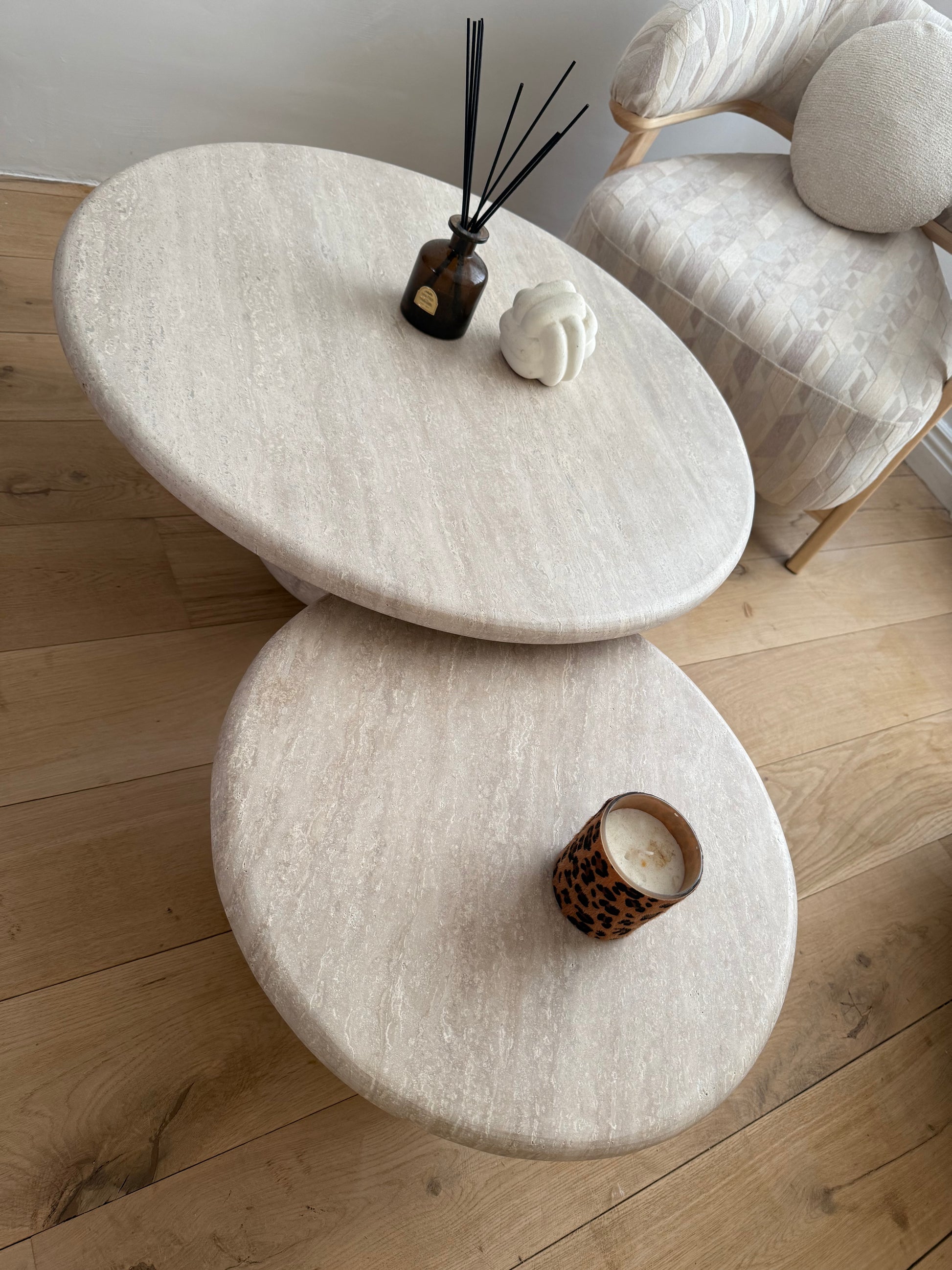 Lot de 2 Tables Basses en Travertin – Design Sculptural et Élégant