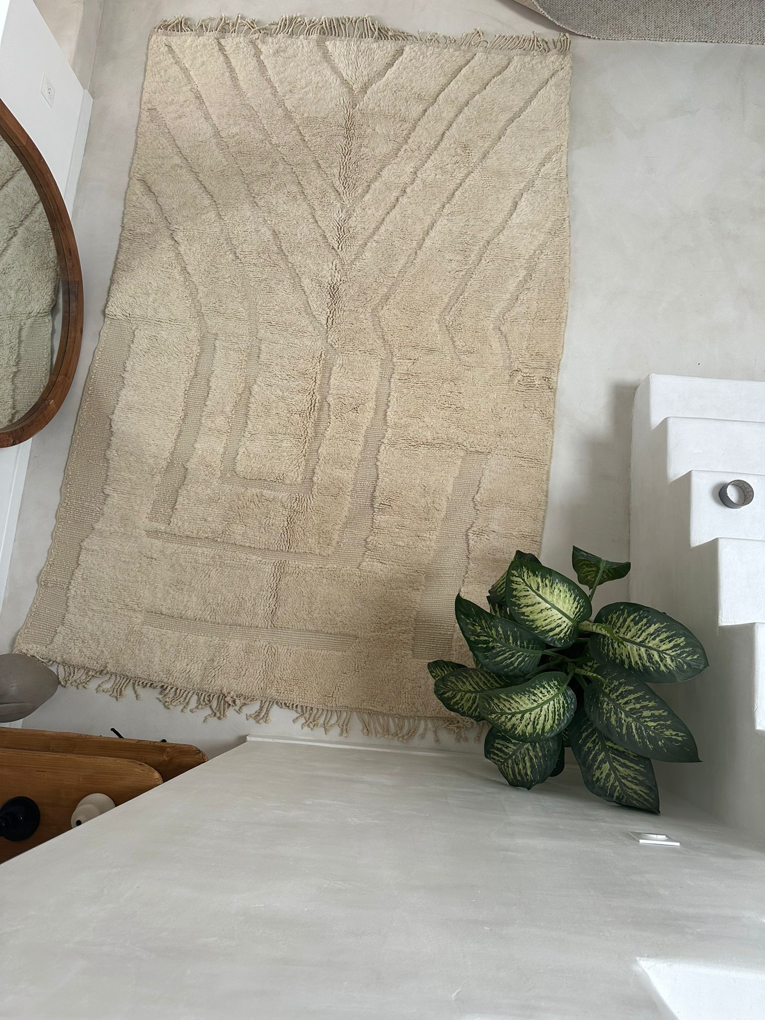 Les tapis Mrirt figurent parmi les tapis berbères les plus populaires au Maroc. Ces tapis tissés à la main sont fabriqués à partir de laine vierge produite par les moutons berbères. La laine est extrêmement douce et moelleuse, et les tapis sont réputés pour leur longévité et leur durabilité.