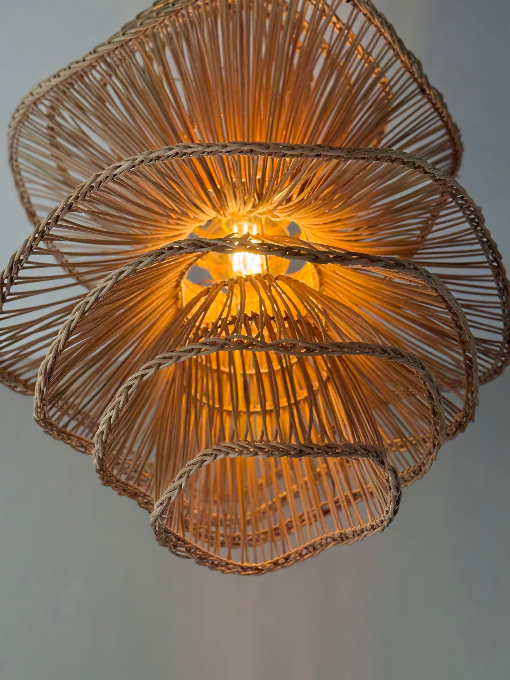 Sublimez votre intérieur avec cette suspension en rotin fleuri, entièrement tressée à la main dans un rotin de qualité supérieure. Ses courbes élégantes et son tressage délicat créent un jeu d’ombres chaleureux, idéal pour une ambiance naturelle et raffinée.